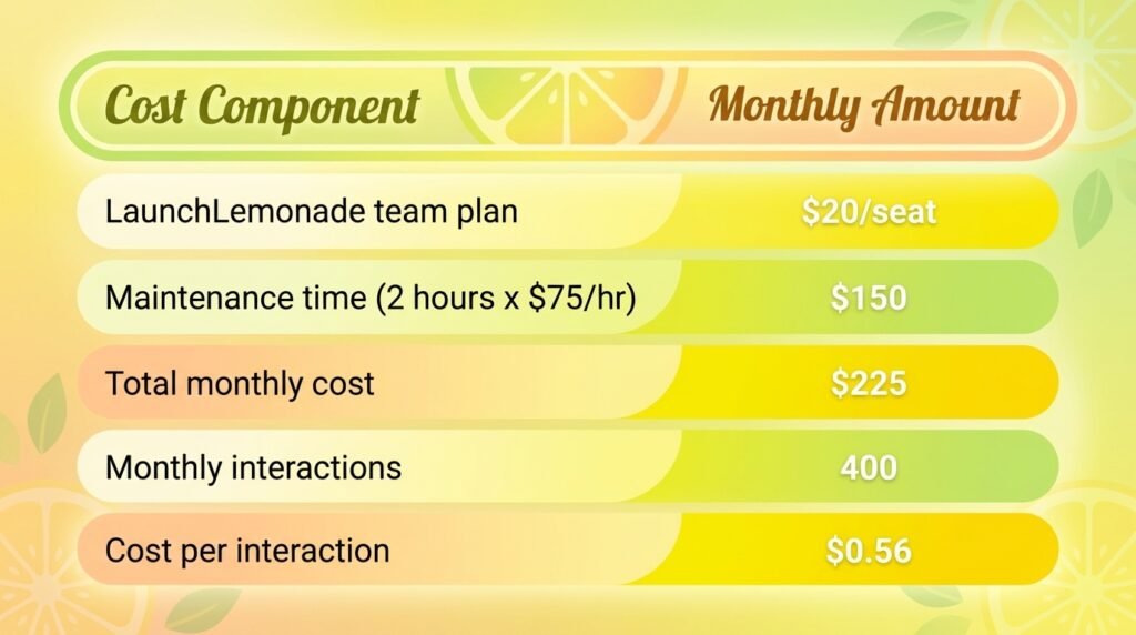 Cost per interaction tells you exactly how much each conversation with your AI assistant costs you. For most small businesses using AI platforms, this number falls between $0.02 and $0.15 per interaction, compared to $5-15 for a human handling the same conversation.